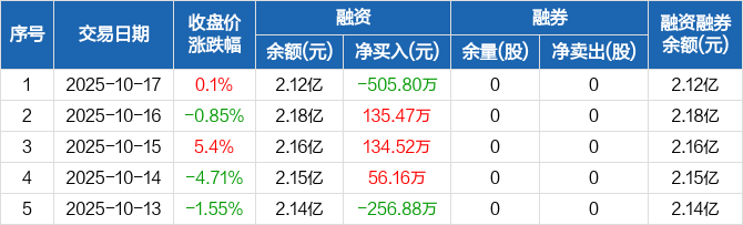 汇宇制药:融资净偿还505.8万元,融资余额2.12亿元(10-17)