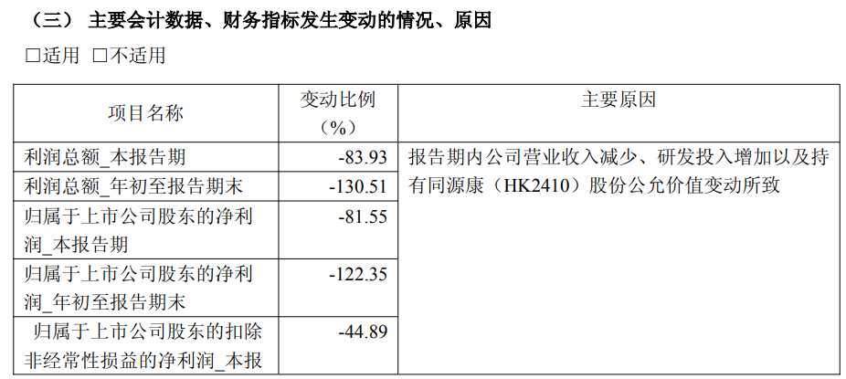 营收减少、研发增加 持股公允价值变动 汇宇制药第三季度净利暴降82%