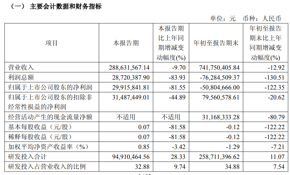 其中第三季度,公司营业收入为2.89亿元,同比下降9.70%;归母净利润为2992万元,同比下降81.55%;扣非归母净利润为3149万元,同比下降44.89%。