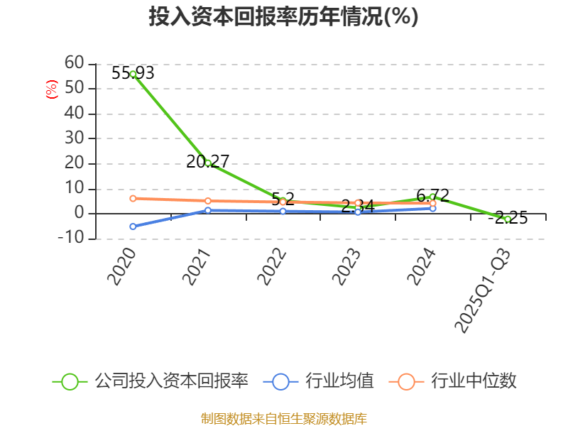 盈利能力方面, 2025年前三季度公司加权平均净资产收益率为-1.29%,同比下降7.21个百分点。公司2025年前三季度投入资本回报率为-2.25%,较上年同期下降7.02个百分点。