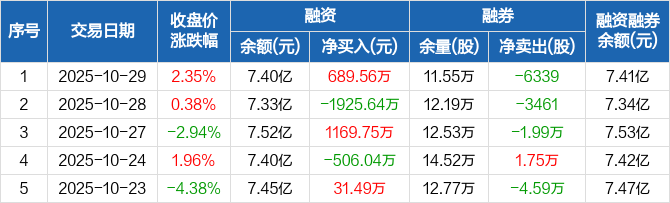 高测股份:融资净买入689.56万元,融资余额7.4亿元(10-29)