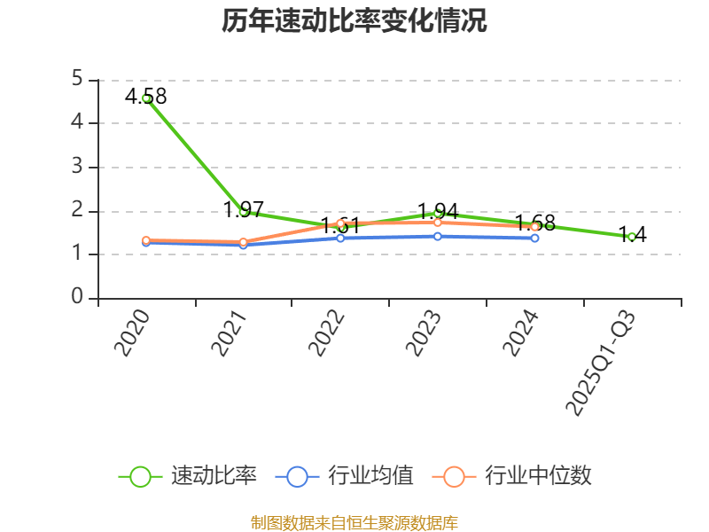 2025年前三季度,公司流动比率为1.68,速动比率为1.4。