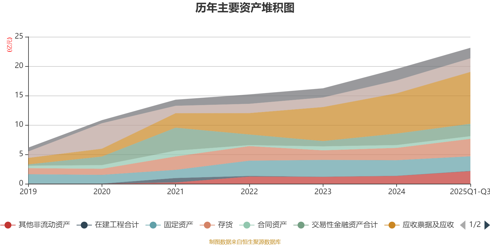 资产重大变化方面,截至2025年三季度末,公司应收票据及应收账款较上年末增加28.82%,占公司总资产比重上升3.09个百分点;固定资产较上年末减少6.9%,占公司总资产比重下降2.92个百分点;其他非流动资产较上年末增加60.67%,占公司总资产比重上升2.43个百分点;存货较上年末增加42.16%,占公司总资产比重上升2.15个百分点。