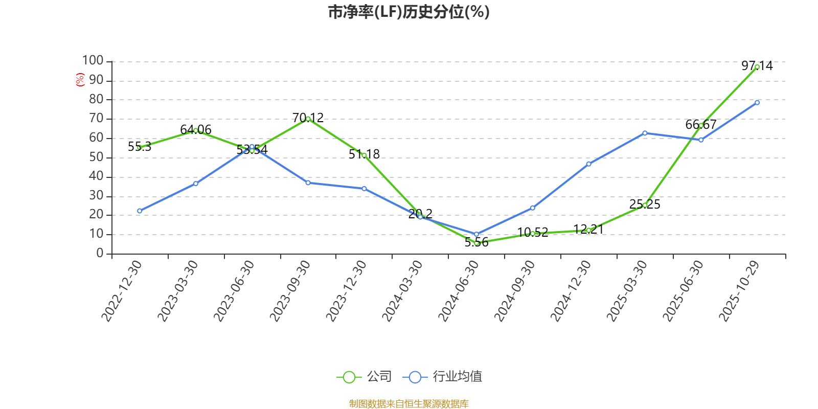 市盈率、市净率为负时,不显示当期分位数,会导致折线图中断。