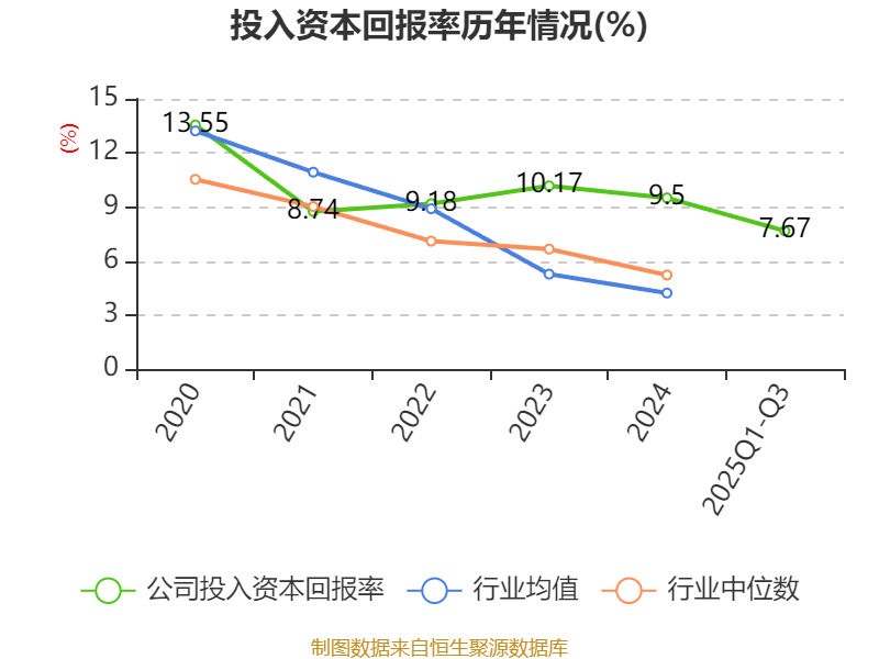 盈利能力方面, 2025年前三季度公司加权平均净资产收益率为7.79%,同比上升2.05个百分点。公司2025年前三季度投入资本回报率为7.67%,较上年同期上升2.16个百分点。