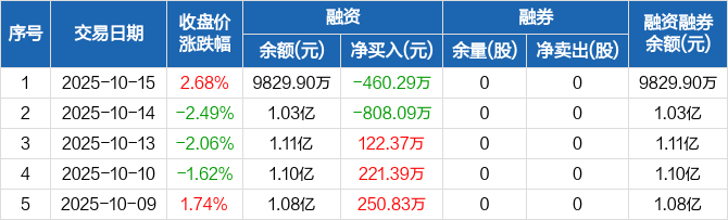 国盛智科:融资净偿还460.29万元,融资余额9829.9万元(10-15)