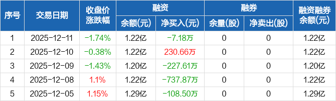 国盛智科:融资净偿还7.18万元,融资余额1.22亿元(12-11)
