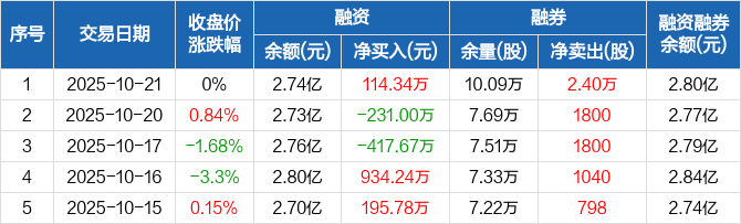 XD航材股:融资净买入114.34万元,融资余额2.74亿元(10-21)