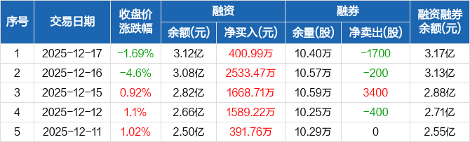 航材股份:融资余额3.12亿元,创历史新高(12-17)