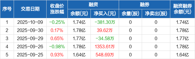 吉贝尔:融资净偿还381.3万元,融资余额1.74亿元(10-09)
