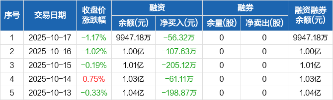 铁科轨道:连续5日融资净偿还累计629.05万元(10-17)