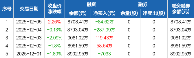 信宇人:融资净偿还84.62万元,融资余额8708.41万元(12-05)