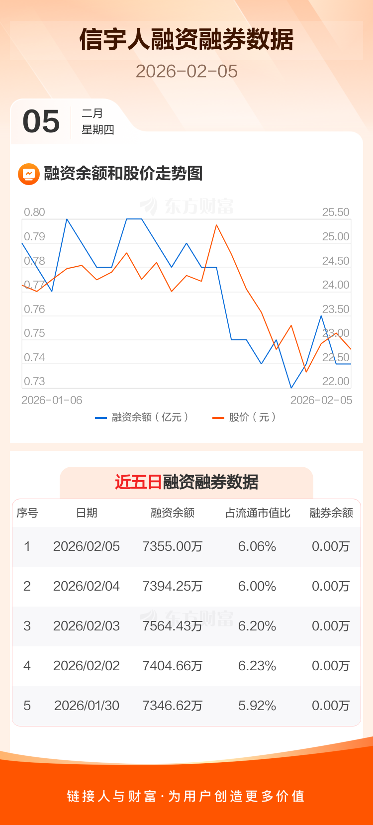 交易所最新数据显示,信宇人于2026年2月5日获融资买入217.30万元,融资偿还256.55万元,当日融资净偿还39.25万元。目前,该股融资余额7355.00万,占流通市值比例为6.06%。