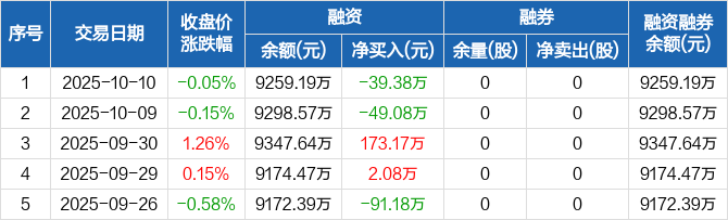 西山科技:融资净偿还39.38万元,融资余额9259.19万元(10-10)