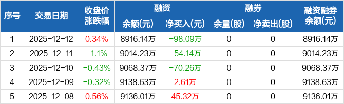 西山科技:连续3日融资净偿还累计222.49万元(12-12)