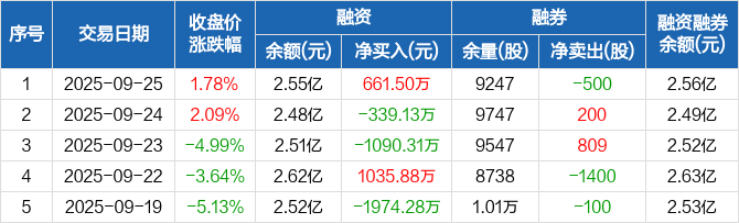 浙海德曼:融资净买入661.5万元,融资余额2.55亿元(09-25)