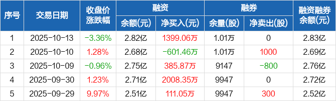 浙海德曼:融资净买入1399.06万元,融资余额2.82亿元(10-13)