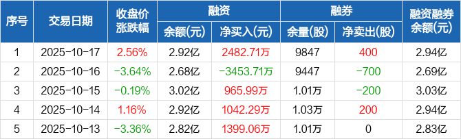 浙海德曼:融资净买入2482.71万元,融资余额2.92亿元(10-17)