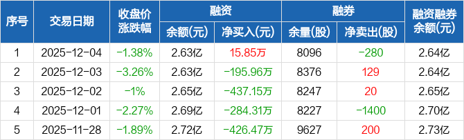 浙海德曼:融资净买入15.85万元,融资余额2.63亿元(12-04)