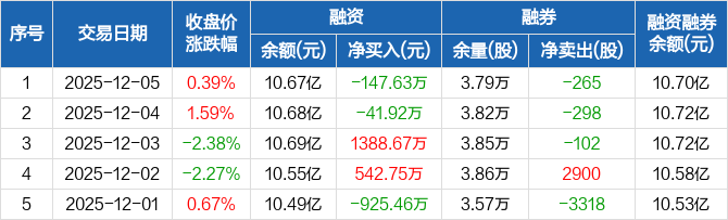 艾力斯:融资净偿还147.63万元,融资余额10.67亿元(12-05)