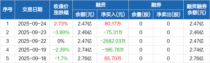 山大地纬:融资净买入80.17万元,融资余额2.47亿元(09-24)
