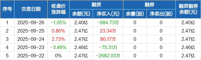 山大地纬:融资净偿还684.73万元,融资余额2.4亿元(09-26)