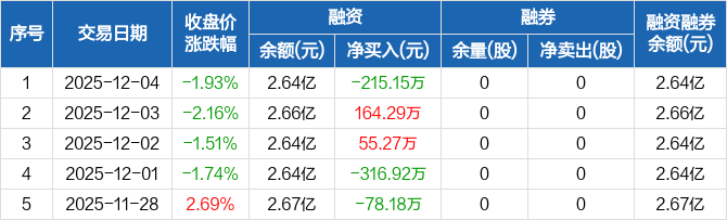 山大地纬:融资净偿还215.15万元,融资余额2.64亿元(12-04)