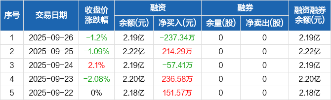 伟思医疗:融资净偿还237.34万元,融资余额2.19亿元(09-26)