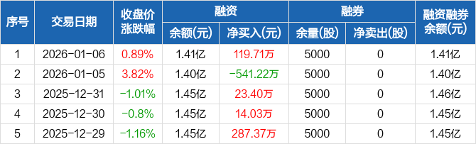 安杰思:融资净买入119.71万元,融资余额1.41亿元(01-06)