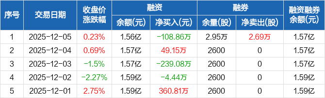 上海合晶:融资净偿还108.86万元,融资余额1.56亿元(12-05)
