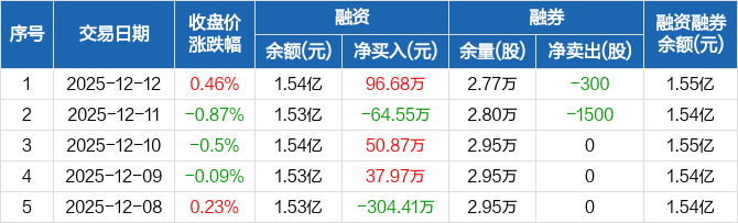 上海合晶:融资净买入96.68万元,融资余额1.54亿元(12-12)