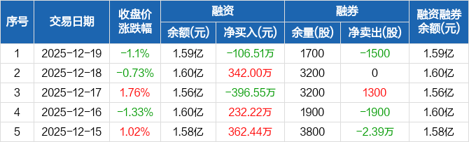 上海合晶:融资净偿还106.51万元,融资余额1.59亿元(12-19)