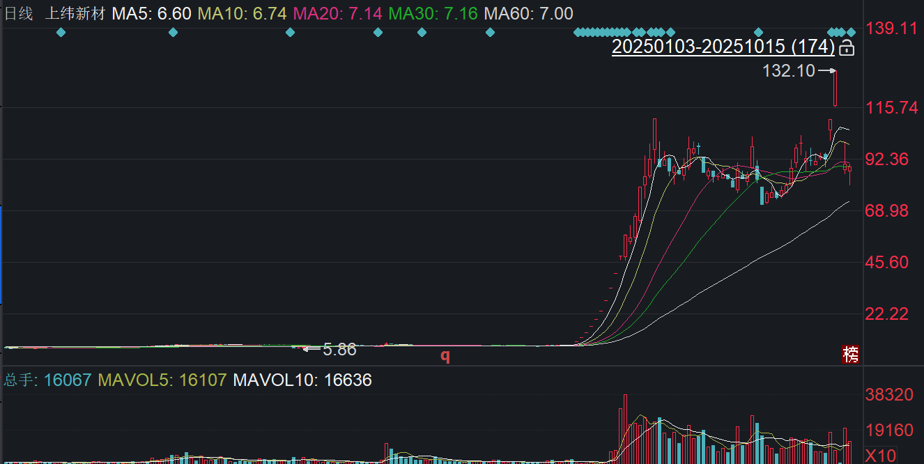 今年7月9日至9月25日期间,上纬新材股票价格曾持续大涨,区间累计上涨1597.94%。7月9日至10月15日期间,公司股票交易9次触及股票交易异常波动情形,7次触及股票交易严重异常波动情形。