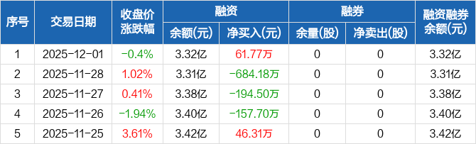 凌志软件:融资净买入61.77万元,融资余额3.32亿元(12-01)