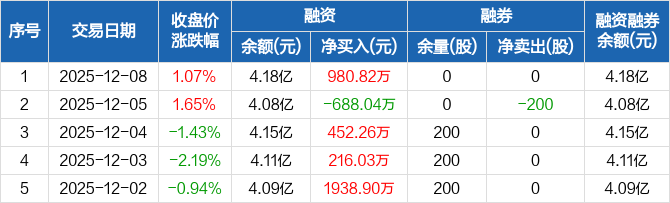 新相微:融资净买入980.82万元,融资余额4.18亿元(12-08)