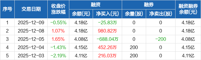 新相微融资融券信息显示,2025年12月9日融资净偿还25.83万元;融资余额4.18亿元,较前一日下降0.06%。
