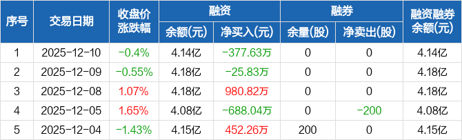 新相微:融资净偿还377.63万元,融资余额4.14亿元(12-10)