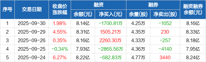正帆科技:融资净偿还1700.81万元,融资余额8.14亿元(09-30)