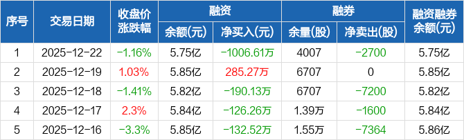 金博股份:融资净偿还1006.61万元,融资余额5.75亿元(12-22)