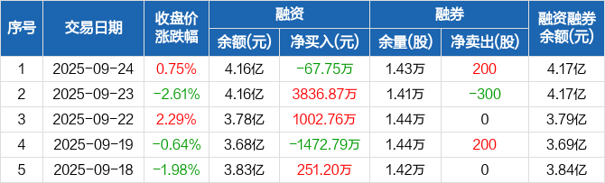 天承科技:融资净偿还67.75万元,融资余额4.16亿元(09-24)