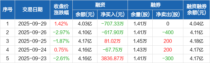 天承科技:融资净偿还707.33万元,融资余额4.03亿元(09-29)