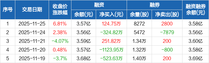 天承科技:融资净买入124.75万元,融资余额3.57亿元(11-25)