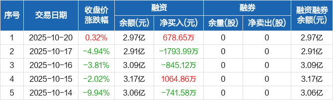 先锋精科:融资净买入678.65万元,融资余额2.97亿元(10-20)