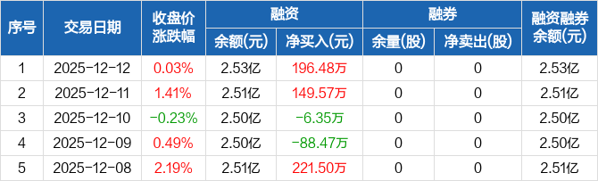 先锋精科:融资净买入196.48万元,融资余额2.53亿元(12-12)