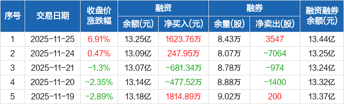恒玄科技:融资余额13.25亿元,创历史新高(11-25)