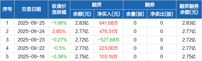杭州柯林:融资余额2.83亿元,创历史新高(09-25)