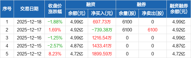 杭州柯林:融资净买入697.73万元,融资余额4.99亿元(12-18)