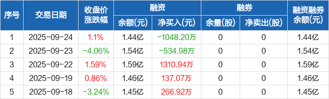 奥精医疗:融资净偿还1048.2万元,融资余额1.44亿元(09-24)