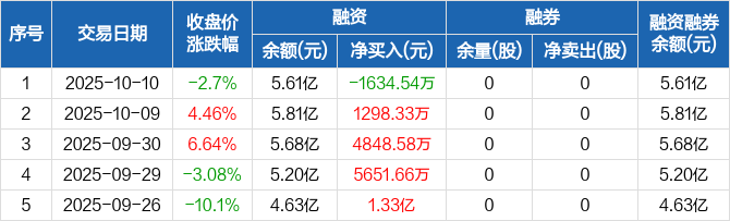 合合信息:融资净偿还1634.54万元,融资余额5.61亿元(10-10)