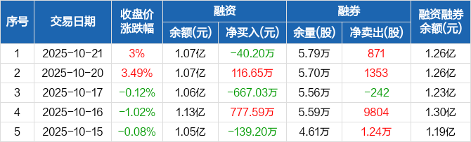惠泰医疗:融资净偿还40.2万元,融资余额1.07亿元(10-21)